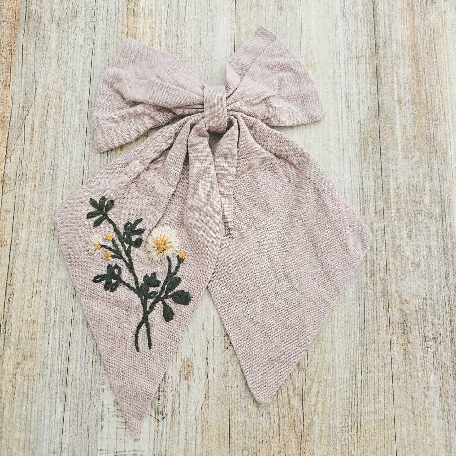 Puedes bordar el diseño que quieras en este lindo lazo de lino hecho a mano en Chile