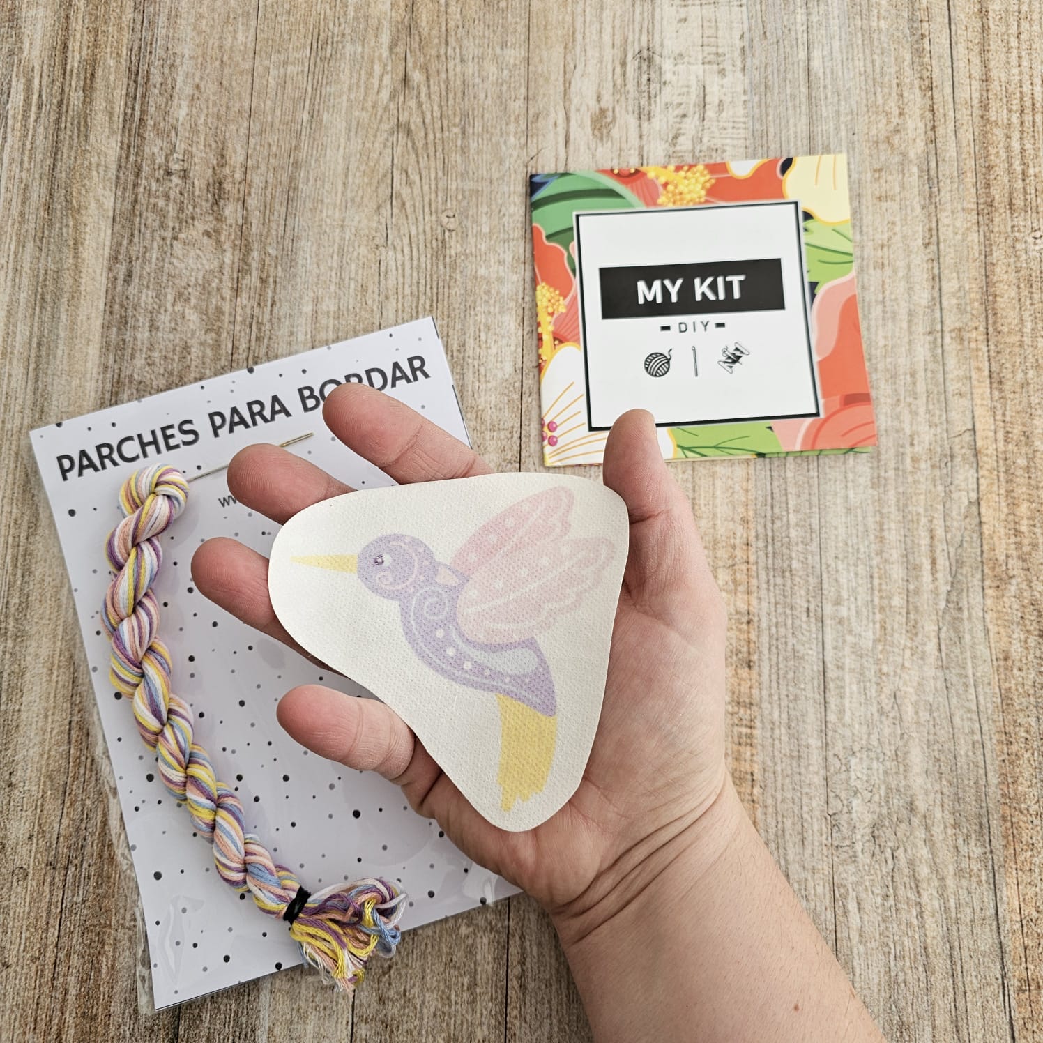Despega el diseño del papel, pégalo en la superficie que quieres bordar, puede serchaquetas, poleras, bolsos, cojines, telas, manteles, pieceras, tejidos y muuuucho más!y ¡listo!